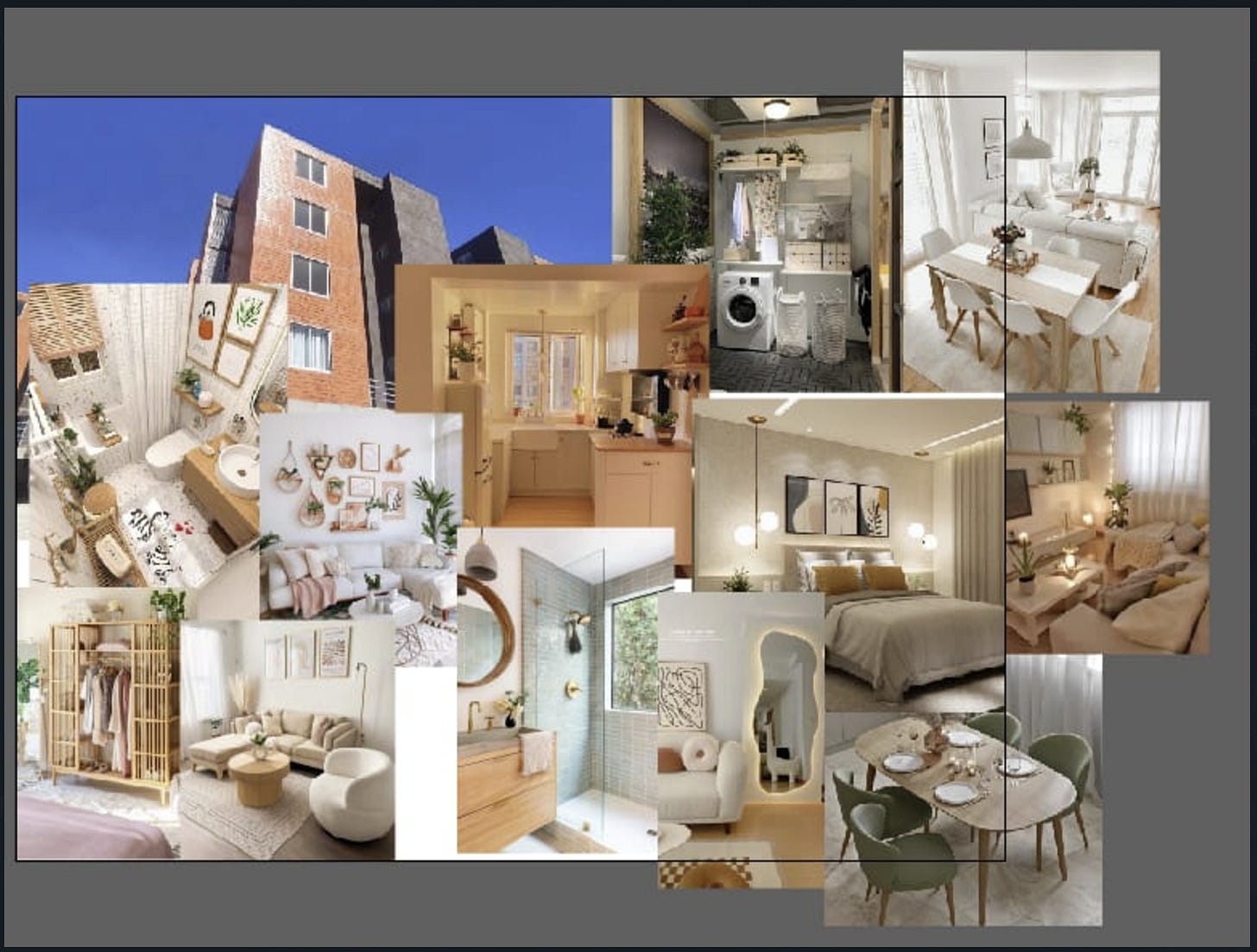 Resulta que Pinterest ha sido mi lugar favorito para buscar inspiración en mi trabajo, desde diseños de logos, manuales corporativos y demás. De repente me encontré a mi misma guardando pines para mi futuro hogar. Muebles, ventanas, cortinas, electrodomésticos… todo estaba ahí. Unos meses antes de firmar para comprar mi casa, deseé mucho tener mi espacio propio. Así que tomé una foto de la inmobiliaria donde se ve un departamento por fuera, y luego, con ayuda de Pinterest, complementé esa foto con una especie de collage.